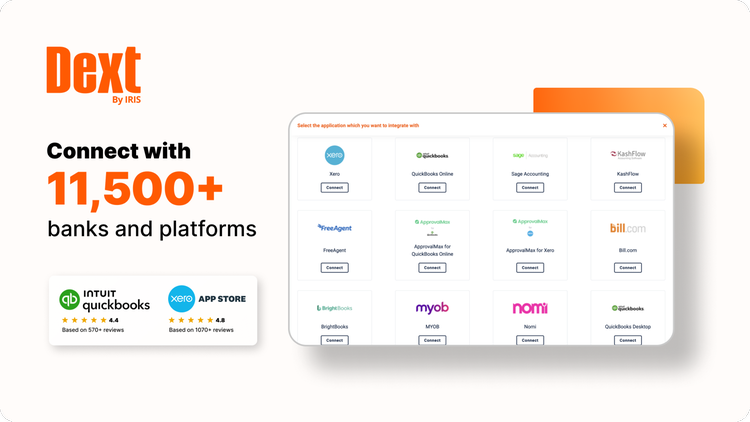 Dext works easily with Sage and connects with over 11,500 financial institutions globally.